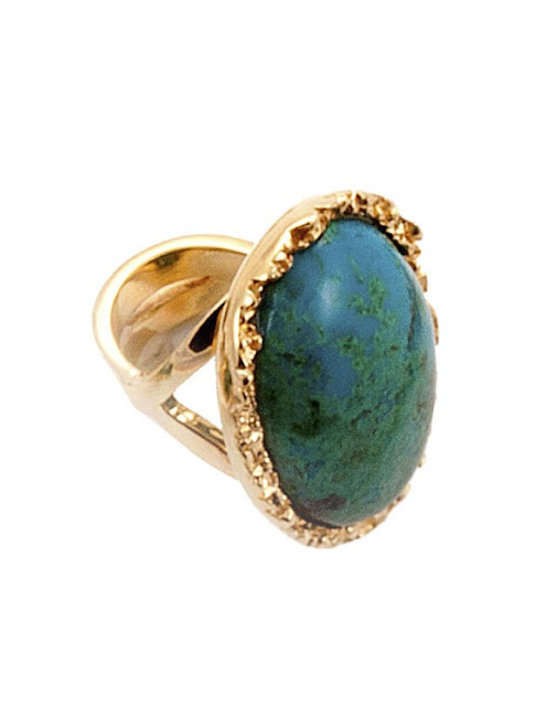 Dorado y en color verde, este anillo quedará fenomenal con cualquier color: con un look en negro o un look en blanco queda muy chic. De Francesca Romana Diana