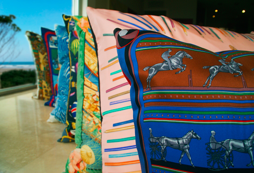 La primera colección de fulares y pañuelos de Hermès sa lanzó en Francia en 1937. Desde ese momento, fueron adoptados por la élite del país como un básico, y elevados como uno de los accesorios más representativos de la casa de moda gala. Y todavía hoy, sus carrés y otros pañuelos mantienen ese halo de exclusividad que los ha convertido en auténticas piezas de colección. Hoy, la diseñadora de interiores Monica Fittipaldi les ha dado una utilidad inédita al emplearlos como fundas de su nueva línea de almohadones. De ahí que no exista un almohadón igual a otro. Son piezas únicas y exclusivas. Su precio oscila entre los 900 y los 1.065 euros y se venden a través de la boutique online de la diseñadora francesa, L’atelier Carré.
