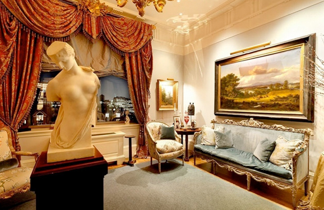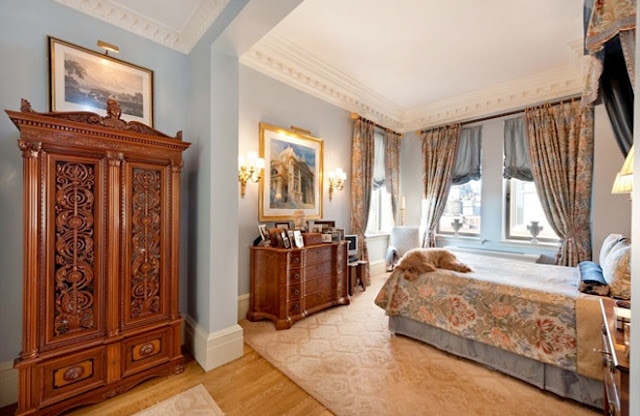 Un dormitorio. La casa de Hyland tiene en total doce habitaciones. Éste es solo uno de los dormitorios con los que cuenta su apartamento. El empresario y su pareja, Constantino Castellano, han dedicado la última década a la decoración del domicilio. Como explicaba él mismo en el New York Times, los estilos van desde los salones públicos inspirados en la Grecia Clásica y la villa de Pompeya a un comedor inspirado en Monticello y una cocina con aire gótico