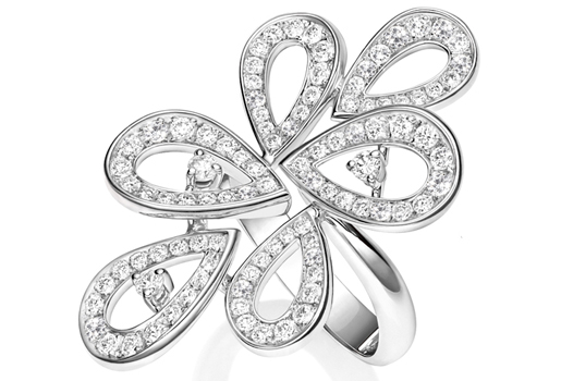 | Modelo Pétales de Rose Motif realizado en oro blanco de 18kt con casi 8,8ct de gemas preciosas. Edición limitada. Pieza única. 170.000 €. |