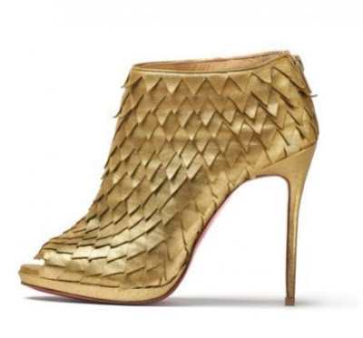 | botín peep toe con escamas doradas |