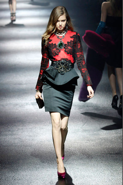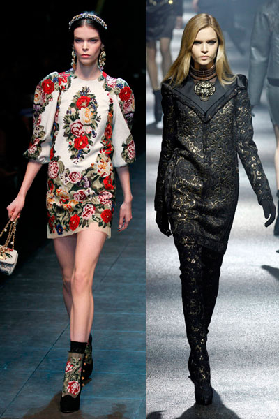 Aires barrocos. Ante la crisis, nada mejor que apostar por el barroquismo. Brocados, apliques, terciopelos, bordados… atrás quedo «Menos es más». Exclusivamente para las noches más sofisticadas (Foto: Dolce & Gabbana y Moschino).