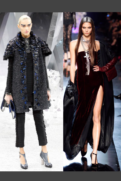 Lady gothic. Apostar por los extremos. Otra tendencia que viene pisando fuerte en la pasarela es el look gótico. Se logra apostando por el total look en negro y añadiendo un toque en forma de joya. (Fotos: Chanel y Jean Paul Gaultier)