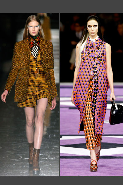 Mix de estampas. Este otoño, se llevan las mezclas de prints. Lo dice Prada y ante eso… Ante eso, sólo queda decir: «Tú mandas«. (Foto: Miu Miu y Prada).
