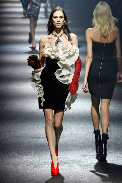Un touch colorado. Lanvin da la solución: añadir un toque colorado al binomio blanco y negro, un outfit ganador. (Foto: Lanvin).