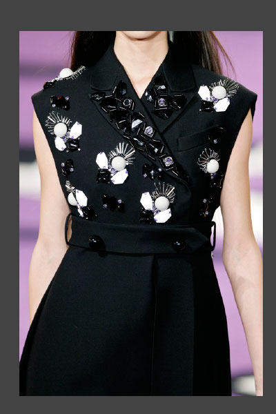 Sí a los detalles. Prada, propone prendas llenas de artesanía: Bordaditos, apliques, brocados… Un sobrio vestidito negro puede ser lo más si se colma de apliques, como los de la imagen. (Foto: Prada).