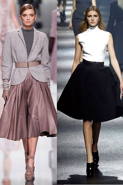 Años 50. Esta temporada, cinturitas marcadas y faldas de vuelo. (Foto: Dior y Lanvin).