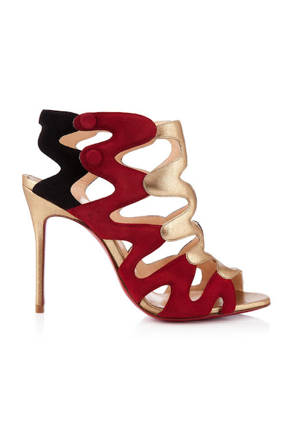 | Abierto de Christian Louboutin, con tiras en burdeos, negro y dorado |