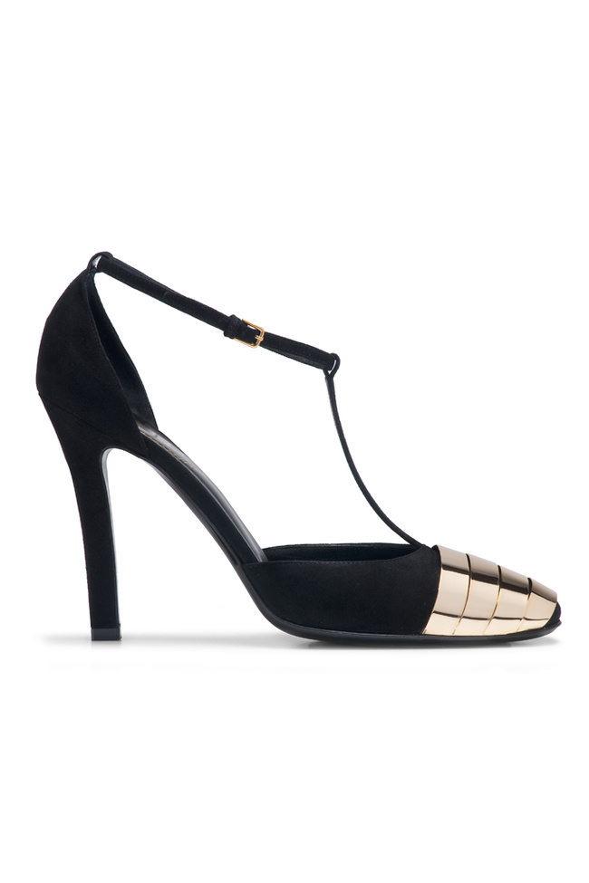 | en T con puntera metalizada, de Yves Saint Laurent. |