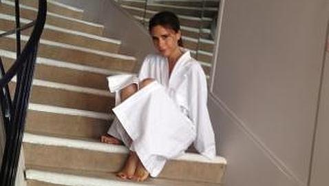 Victoria Beckham posa en albornoz en las escaleras de Chanel