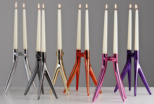 El gurú del diseño mundial, el parisino Philip Starck, es renocido internacionalmente tanto por la funcionalidad de sus diseños como por la cuidadada estética que adquieren los mismos. Entre sus últimas creaciones para el hogar se encuentra el primer candelabro de la historia de la prestigiosa firma de decoración italiana Kartell, que ha creado en colaboración con Ambroise Maggiar. Se llama Abbracciaio y es una composición que simula, según la propia casa, un «abrazo amoroso» donde dos velas se fusionan mediante una base doble de aluminio brillante acabada en distintos colores. El candelabro mide 26 cm de altura y está disponible en tonos plata, oro, bronce, naranja, violeta y rosa.
