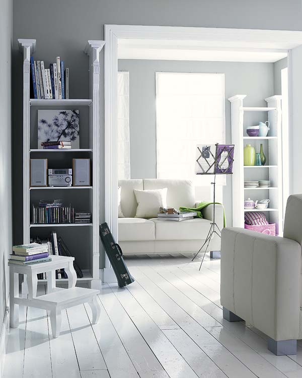Las bibliotecas, con 1 m de ancho o menos, son perfectas para sacar partido a las paredes en las que no cabe una gran estantería. En este living hay 2 con estantes regulables, sin fondo: una alberga el equipo de música, CD y libros; y la otra, jarrones y menaje en orden