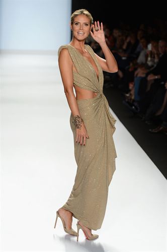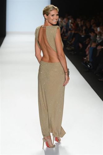 Pero sin duda, la gran estrella de la segunda jornada de la Mercedes Benz New York Fashion Week fue Heidi Klum, quien estaba impresionante con un vestido dorado que dejaba su espalda al aire.