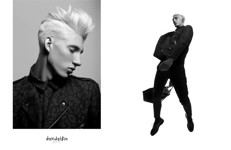 Cabellos pulidos teñidos de un rubio platino prácticamente blanco y caras inmaculadas definen al modelo utilizado por Delfín en su nueva campaña publicitaria. Zapatos de cordones y randes bolsos, diseñados por el bloguero y promesa de la moda Pelayo, vienen a completar el estilo para este otoño del hombre de David Delfín.