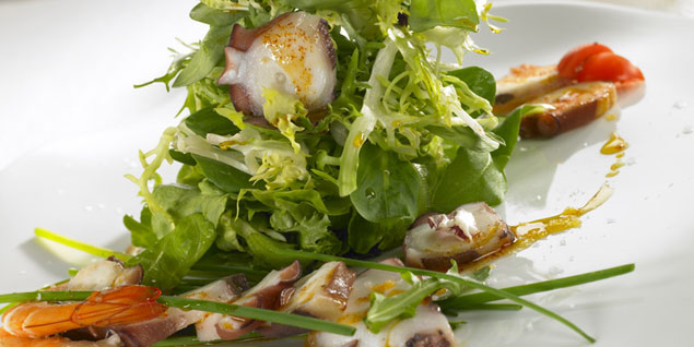 Receta: Ensalada templada de pulpo y langostinos