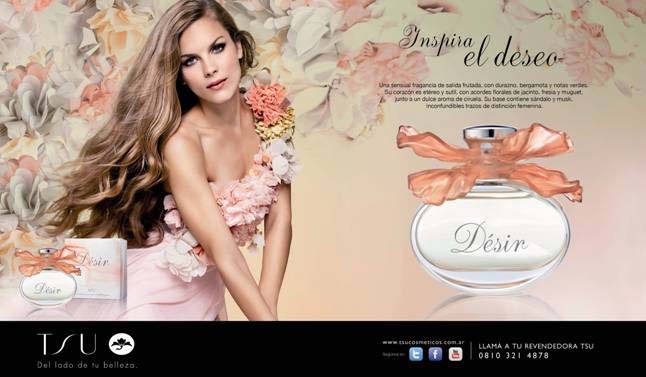 Désir, sofisticada y glamorosa, de intensa presencia, que expresa el natural poder de seducción femenino. Una sensual fragancia de salida frutada, con durazno, bergamota y notas verdes. Su corazón