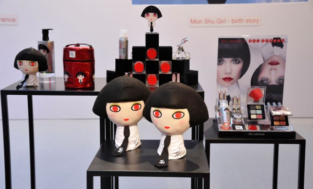 Pero Karl no estuvo solo, porque Mon Shu fue la anfitriona de la noche. ¿Quién es Mon Shu? Es la versión manga -historieta- de la mujer japonesa nacida de la mente de Lagerfeld. Recreada en forma de muñeca gigante, Mon Shu fue la estrella de la fiesta, dando la bienvenida a los invitados. Éstos tuvieron la oportunidad de disfrutar del corto de aventuras de la mascota en su viaje alrededor del mundo, y contemplar la exposición de ilustraciones originales de Karl Lagerfeld. Estas obras están realizadas con las sombras de ojos Shu Uemura, la verdadera fuente de inspiración de esta colección.