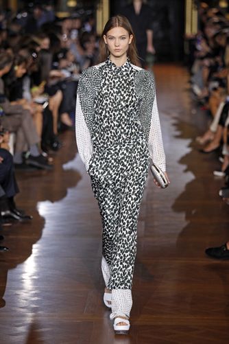 Los estampados animales en consonancia con auténticos colores encendidos son la apuesta perfecta de Stella McCartney para la próxima temporada. La diseñadora propone prendas funcionales con looks masculinos, de sport y aquellos que ensalzan la sensualidad femenina mediante palabras de honor, peplums y transparencias troqueladas con el verde menta como color estrella.