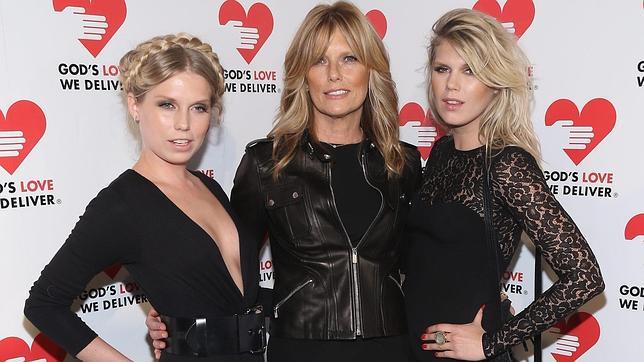 | Patti Hansen (en el centro), esposa de Richards desde 1983, con sus hijas Theodora (26 años) y Alexandar (27) |