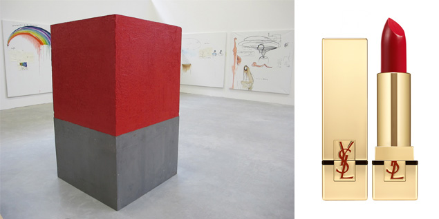 El artista francés Fabrice Hyber se sumerge en el universo cromático de la división cosmética de Yves Saint Laurent para dar forma a su creación ‘1m3 de beauté’. Realizado a partir del material del icónico ‘Rouge Pur Couture n°1’ de la ‘maison’ francesa, el artista ha dado forma a un gigantesco bloque teñido del mismo color que el labial de YSL. Con esta obra, expuesta en el Palais de Tokyo de París, se estrechan los lazos entre la belleza y el arte.