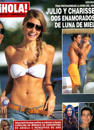 Julio Iglesias Jr. y Charisse han protagonizado las fotografías más tiernas, que han merecido destacar la portada de la revista ¡Hola!. Estas imágenes muestran a esta pareja recién casada, que ha comenzado su luna de miel en Florida, y que recorrerán el Estado de punta a punta durante todo el mes de noviembre.