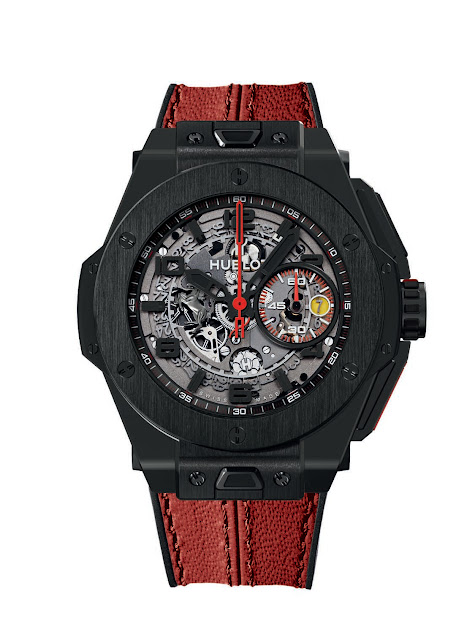 El primero es el denominado «Big Bang Ferrari «Carbon Red Magic». Se trata del nuevo emblema del avance de la marca hacia su verticalización, con una caja y un movimiento diseñados, desarrollados y producidos al 100% por Hublot en su manufactura.