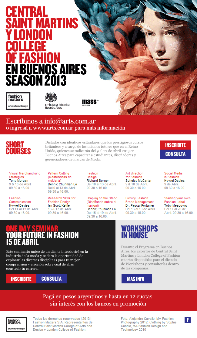 Actualidad Central Saint Martins y London College of Fashion: Inscripciones abiertas!!! 04/02/2013 Marcela Fittipaldi Periodista.Editora marcelafittipaldi.com.ar. Ex-editora Revista Claudia, Revista Telva España, Diario La Nación, Diario Perfil y revistas femeninas de la editorial Anterior La Scuderia Ferrari, en hora con Hublot Más recientes Receta de pollo frito al estilo vienés También te puede interesar Una investigación de Booking.com revela cómo la comunidad viajera argentina LGBTQ+ está tomando el control de sus viajes 28/10/2024 Frenar el aumento de las violencias no puede esperar por la Lic. Alejandra Perinetti 01/10/2020 LOS BENEFICIOS DE INVERTIR EN URUGUAY DISERTÓ EN DISTRITO EL GLOBO 20/05/2024 Dejar una respuesta Cancelar la respuestaTu dirección de correo electrónico no será publicada. Los campos obligatorios están marcados con *Nombre * Correo electrónico * Web Comentario Sí, agrégame a tu lista de correos.Δ
