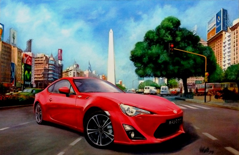 Tras el lanzamiento de su nuevo modelo deportivo, Toyota Argentina encargó al reconocido artista plástico José María Villafuerte, realizar una obra que retrate al Toyota 86 en medio de la ciudad de Buenos Aires.