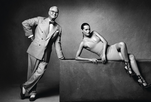 EL ARTISTA Y LA MODELO. Manolo Blahnik, 70 años, posa con la ‘top’ británica de origen iraní Yasmin Le Bon para un editorial de moda publicado en Reino Unido. Los ‘manolos’ se convierten en fetiches en los pies de las grandes modelos internacionales. Él lleva unas manoletinas Toro (620 ), su diseño favorito, y ella, unos Buio (670 ).