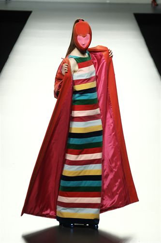 Al son de One day or another de Blondie las modelos van entrando una detrás de otra. Con la cara tapada, con máscaras en forma de corazón, Ágatha Ruiz de la Prada le concede todo el protagonismo a sus diseños. Rojos, fucsias, verdes aguamarina y mostaza, entre muchos otros colores, componen la gama cromática del desfile más divertido de la jornada.