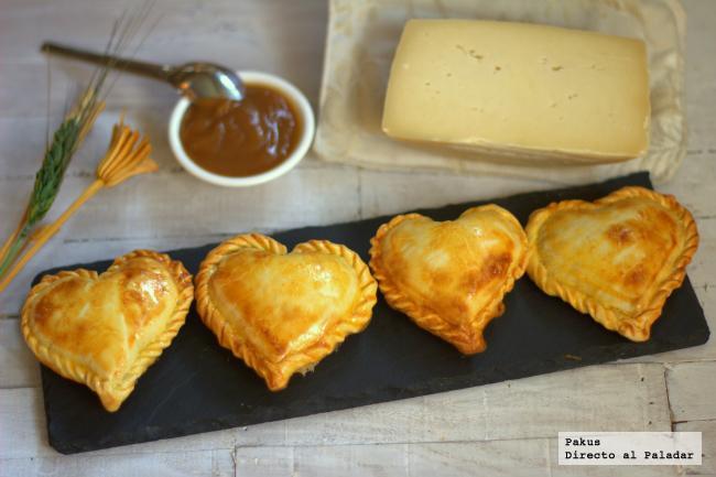 Estos delicados hojaldres corazón fundido para San Valentín son un estupendo aperitivo y están muy buenos tanto templados como en frío, aunque en rigor debéis servirlos a cierta temperatura para que el corazón fundente de queso haga honor a su nombre. Si queréis, podéis acompañarlos con una compota de manzana para dar un toque dulce a una noche tan especial.