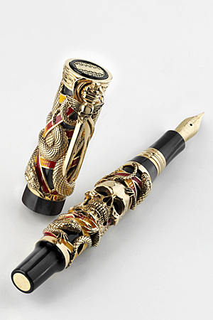 El cuerpo de la pluma es de celuloide negro perlado con superposiciones en oro macizo de 18 quilates, acabadas a mano y con detalles de esmalte traslúcido, en tonos rojos y amarillos. El diseño yuxtapone la vida (representada por los reptiles) y la muerte. Para culminar el conjunto apocalíptico, una espada representa el clip junto a una calavera y un puño. La estilográfica cuesta 46.975 €.