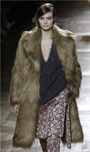 Para conseguirlo, van Noten recurre a las pieles, que envuelven las salidas de las modelos, y de sus fieles que lo luzcan la próxima temporada, en abrigos de pelo largo y confección XXL. Bajo su manto, conjuntos de inspiración masculina, con la vuelta del pantalón de pinzas al tobillo como uno de los grandes protagonistas, blusas vaporosas, vestidos rectos y de inspiración años ’20, estampados florales que se alternan con anchas rayas verticales, superposiciones y una apuesta clara por la paleta de los tierra y los grises.