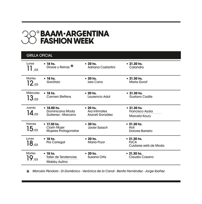 Y a lo largo de la 38 edicion de BAAM Argentina Fashion Week estarán: