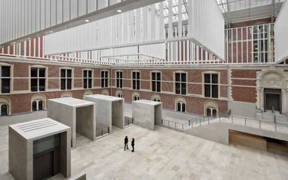 Nuestro guía es Taco Dibbits, una dínamo que viste un bonito traje azul marino, tiene el pelo como Bowie y es director de colecciones (camina rápido y habla rápido; hay que intentar mantenerse a su nivel). La primera parada es el vestíbulo principal, actualmente un patio abierto que ha sido restaurado, retechado y repensado por Cruz y Ortiz, arquitectos sevillanos. Seguro que la firma sabe bastante sobre luz, ya que han transustanciado un día decente de invierno en Holanda en algo parecido —en términos pictóricos— a una Anunciación, tal es el chorro de luminosidad que nos recibe. Y sí, es una especie de renacimiento.