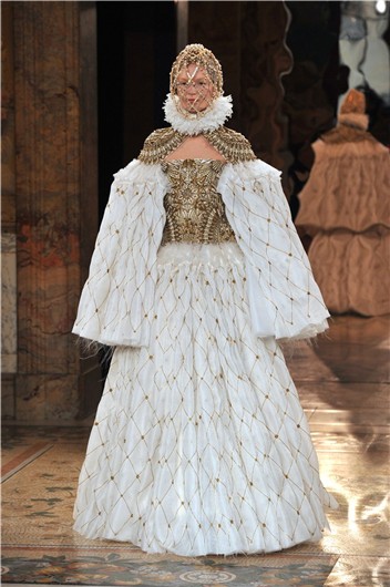 Una vez más, la firma Alexander Mcqueen ha subido sus colecciones a la pasarela parisina, esta vez dejándonos una colección de tintes barrocos. Majestuosos vestidos llenos de pedrería, apliques metalizados y hasta perlas se han llevado gran parte del protagonismo entre las propuestas que Sarah Burton, a pesar de su baja por maternidad, ha ofrecido para el próximo invierno.