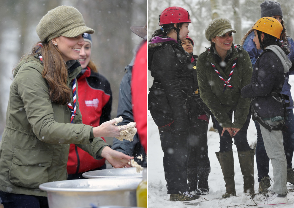 Catherine se dejó llevar por el espíritu aventurero que comparte con su marido, y conquistó a todos no sólo con su habitual simpatía y cercanía, sino porque una vez más demostró que es una mujer de su tiempo como otra cualquiera, resuelta y decidida, que sabe cómo enfrentarse a las adversidades. Para este día de campo, la Duquesa eligió un look muy cómodo en el combinó unas botas de agua (de la prestigiosa firma francesa Le Chameau), pantalones vaqueros ajustados y chaqueta de color verde militar y gorro a juego. «Parece una princesa porque es muy guapa y tiene el pelo muy bonito«, dijo la pequeña Fátima Vukhari, de 9 años, según recoge la edición digital de la revista People. «Nos enseñó a hacer un montón de cosas, ¡es lo mejor que hemos hecho desde que estamos en los scout«, aseguró emocionada, y añadió: «Le dimos un oso de peluche para su bebé. Pero no era ni de color azul ni rosa porque como todavía no sabemos si es niño o niña. Nos dijo que era muy mono«.