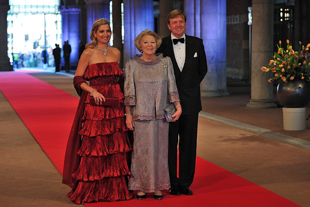 Tenía el listón tan alto Máxima Zorreguieta que erró, quizás por la presión de la expectación mundial, en la noche más importante de su vida, la previa a la ceremonia de entronización. Por primera vez, la princesa holandesa fue desbancada por la princesa de Asturias, muy acertada con su elección de vestido, joyas y peinado. Letizia parece por ahora la ‘ganadora. La reina Beatriz optó por el malva, ese tono de dama de honor americana. El color no es lo más elegante, pero el brocado escogido se ve suntuoso, muy propio de una reina que cede el armiño a su primogénito y se enfunda tan bien en una capa con borde de zorro como incrusta la tiara en su permanente ‘thatcheriana’. En cuanto a las demás princesas, Mary de Dinamarca no defraudó con un vestido con falda de satén y cuerpo empedrado, Mette-Marit de Noruega parecía haberse enrollado la cortina de la ducha de palacio y tanto Matilde de Bélgica como Victoria de Suecia fueron fieles a su sosería habitual. Entre las grandes ausentes, las consortes del soberano monegasco, Alberto II (Charlotte Winstock), y del heredero nipón, Naruhito. La asistencia de la princesa Masako a Ámsterdam se esperaba con gran expectación, pues suponía su primer viaje oficial al extranjero en 11 años.