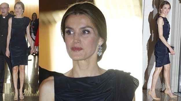 Princesa Letizia: radiante de Hugo Boss en un concierto benéfico. Realmente guapa estaba Doña Letizia en el recital conmemorativo del 80º aniversario de la Casa Nazareth, que promueve un proyecto social de apoyo a periodistas desempleados, dentro de la Fundación Luca de Tena en el Auditorio Nacional de Música. Con un vestido corto, decorado con un volante que la cruzaba el cuerpo, la Princesa de Asturias estaba radiante con este diseño de Hugo Boss, que combinó con un clutch de la misma marca, además de unos zapatos de salón en tono nude. Con el pelo recogido en un moño bajo y unos impresionantes pendientes, estaba perfecta para este acto. Pero con lo que nos vamos a quedar ahora es con el impresionante look que lució la Princesa Letizia, puesto que estaba radiante y espectacular, no sólo con el modelo elegido, sino que acertó de pleno con el peinado y el maquillaje.En esta ocasión, dejó un poco de lado su gusto por firmas low cost como Mango, firma de la que lució una chaqueta en la Misa de Pascua en Mallorca, y tiró de fondo de armario para repetir un vestido color petróleo, es decir, ese azul casi negro con brillo, que es de la temporada verano 2010, y que ya lució ese mismo año en varios eventos.Este modelo la queda por encima de la rodilla y está decorado con un volante que cruza el cuerpo de vestido, terminando en una pequeña manga, mientras que la otra queda con un tirante ancho. En cuanto a los complementos, se decantó por un clutch también de Hugo Boss, mientras que puso la nota de color con los salones color nude que llevaba. Pero como decíamos, lo que más nos llamó la atención fue su look de belleza, puesto que además del precioso recogido con un moño bajo que llevaba, destacaba su maquillaje, menos natural que en otras ocasiones, con unas pestañas muy definidas y con brillo en los labios. Además, los impresionantes pendientes de brillantes que llevaba, daban mucha luz a su rostro, consiguiendo un resultado perfecto. Lo cierto, es que nos ha encantado este look de la Princesa de Asturias, que últimamente se decanta por el negro o los colores oscuros para sus apariciones públicas, pero que en esta ocasión acertó de pleno con el vestido de Hugo Boss, los complementos, el look de belleza y las joyas. Estamos deseando que llegue la coronación de los Príncipes de Holanda, con los que coincidió en la entronización del Papa Francisco, para ver con qué modelito nos sorprende Doña Letizia.