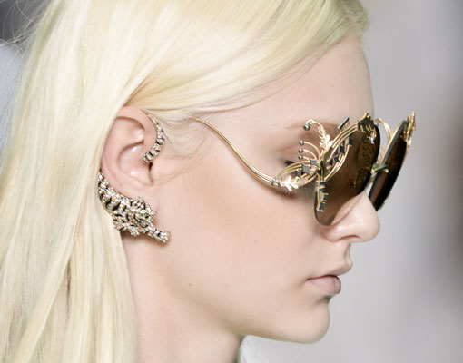 La moda del pendiente en el cartígalo que arrasó en los 90 vuelve en su versión más lujosa, despojándose de cualquier aire punk o tribal. Se llevan los pendientes -lóbulo llenos de pedrería y strass. Joyas ornamentales que cubren desde la parte superior de la oreja hasta taparla completamente a modo de pinganillo decorativo