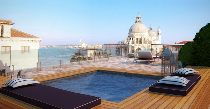 La terraza de la suite Redentore es de 250 m2 y cuenta con piscina y unas espectaculares vistas.