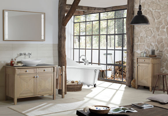 En un lateral encontramos un pequeño mueble auxiliar coordinado con el mueble de lavabo, perfecto para guardar en él los productos cosméticos y retirarlos de la vista, y también perfecto para colocar sobre él algún accesorio o adorno con el que apoyar la decoración.