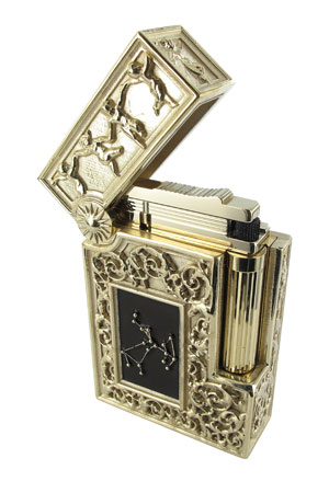St Dupont ha lanzado una colección limitada de encendedores con 31 piezas en bronce pulido y chapadas en oro. Se personalizan según el signo del zodiaco.