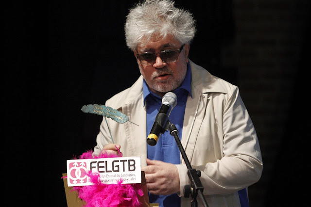 El director de cine Pedro Almodóvar y la escritora y periodista Rosa Montero recibieron anoche los premios Pluma Individual y Pluma Mediática, respectivamente, en la ceremonia de los premios Látigos y Plumas, entregados por la Federación Estatal de Lesbianas, Gays, Transexuales y Bisexuales (FELGTB). «Una película no cambia el mundo, pero puede abrirle los ojos a alguien que, de haberlos mantenido cerrados, hubiera sido infeliz», dijo el cineasta manchego al agradecer, «emocionado», su premio.