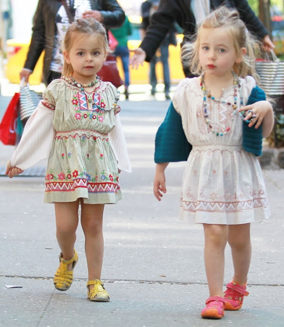 Marion y Tabitha solo tienen tres años y son ya unas mini creadoras de tendencias, al menos en moda infantil. Claro que teniendo una madre como Sarah Jessica Parker, famosa por la serie Sexo en Nueva York, lo raro sería lo contrario. Las pequeñas, de tres años, son las princesitas del boho chic: suelen lucir vestiditos de inspiración étnica o de flores, mallas de colores, calcetines y medias estampadas, sandalias, chaquetitas de punto… y complementos como collares de colores y vistosas diademas. Marion y Tabitha no conocen el concepto de conjuntado, ni siquiera ellas van igual vestidas, pero el hecho es que logran un resultado ecléctico, divertido e ideal para su edad. Muchas mamás ya comienzan a imitarlas para sus niñas.