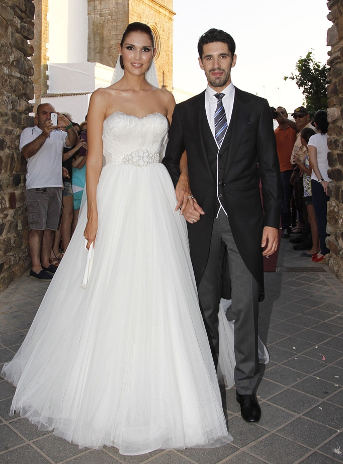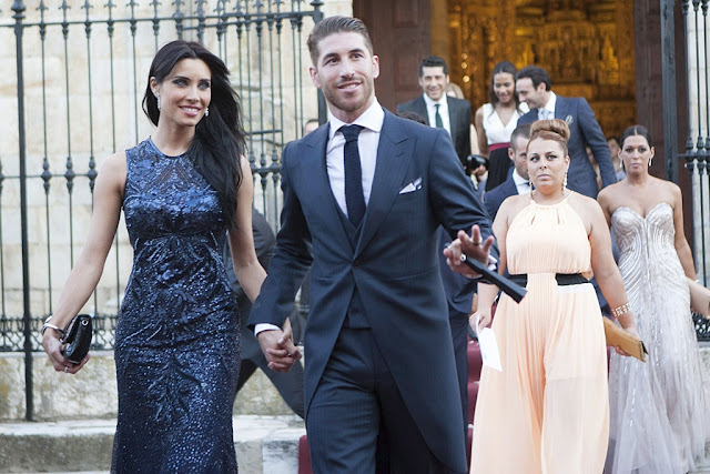 | Una relación viento en popa. Casi tantos flashes como los novios acaparó una de las parejas estrella del momento, Sergio Ramos y Pilar Rubio |