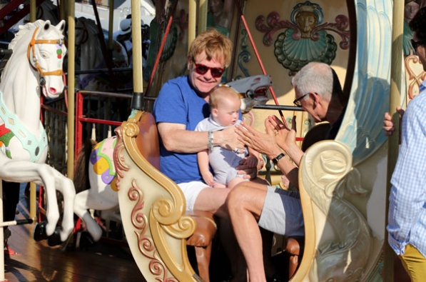 Elton John y David Furnish están pasando unos días de vacaciones en Saint-Tropez junto a sus dos hijos, a los que llevaron a un parque de atracciones. Zachary, de casi tres años, y el pequeño Elijah, de solo siete meses, se lo pasaron en grande compartiendo el tiovivo con sus padres. Sir Elton John, de 65 años, y David Furnish, de 50, celebraron su unión civil el 21 de diciembre de 2005, en el ayuntamiento de Windsor, tras doce años de relación. Desde el primer momento, confesaron que estaban deseando ser padres, así que en diciembre de 2010 llegó a su vida Zachary y en enero de 2013 Elijah Joseph. Desde que se convirtió en padre, el cantante británico está volcado de lleno en su familia, aunque no ha dejado la música y ya tiene listo un nuevo disco, The Diving Board, que saldrá a la venta en septiembre.