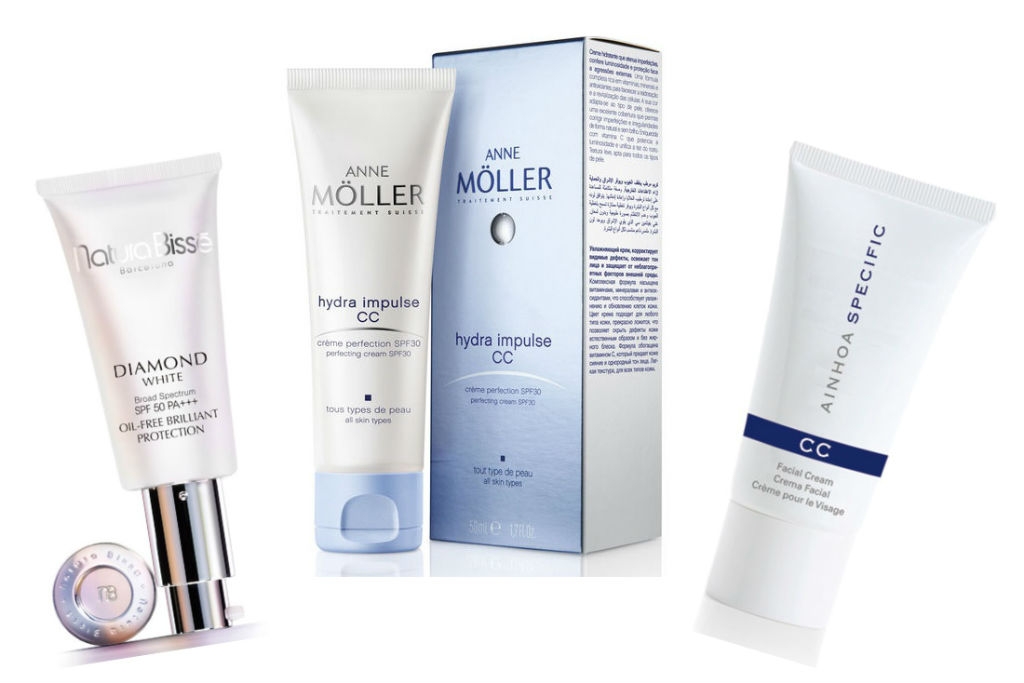 CC Cream Diamond White, de Natura Bissé (P. V. P. 60 euros); Hydra Impulse CC, de Anne Möller (P. V. P. 29,95 euros), y Cover Correction Cream, de Ainhoa (P. V. P. 28,30 euros). Tres CC con acción despigmentante gracias al poder de la vitamina C.