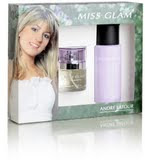 MISS GLAM, inspirada en la frescura de la naturaleza. La mujer Miss Glam es sutil, fresca, delicada y a la vez muy sensual. Un aroma irresistible, combina flores y frutas a la perfección. · Salida: Hesperidé, Fresco. Pomelo, Bergamota, Mandarina, Hojas de Naranjo, Menta · Cuerpo: Floral. Hojas de Violeta, Jazmín, Geranio· Fondo: Maderoso, Dulce. Cedro, Vainillina, Mousse , Sándalo, Caramelo.*Estuche compuesto por Eau de Parfum MISS GLAM x 50 ml. + Deo en aerosol MISS GLAM x 150 ml.
