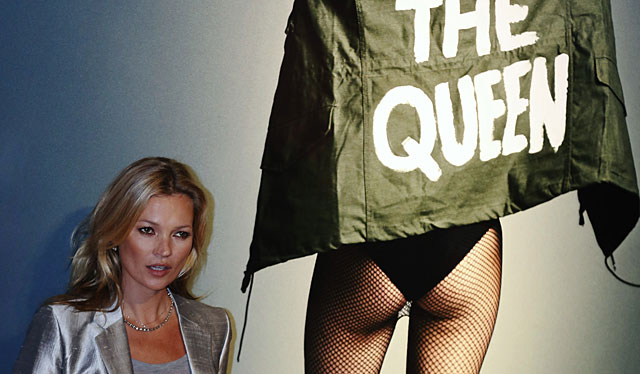 Kate Moss posó ante instantáneas de grandes dimensiones colocadas en una pequeña sala de Christie’s, entre ellas una de Allen Jones, denominada ‘Body Armour’ (Chaleco antibala), con un precio estimado de 20.000 libras (23.400 euros), y otra de Nick Knight, que apareció en la revista Vogue en mayo de este año y que tiene un precio estimado en 25.000 libras (29.250 euros).La modelo también se dejó fotografiar ante una de las fotos más llamativas, tomada por Craig McDean y que la muestra de espaldas vestida con una chaqueta verde que dice ‘Dios salve a la reina’.El precio de salida de esta imagen ha sido estimado entre 40.000 y 60.000 libras (46.800 euros y 70.200 euros). La modelo también fue fotografiada sentada y firmando los catálogos de esta subasta, titulada simplemente ‘Kate Moss’.Elfering ha admitido su satisfacción por trabajar en esta subasta a fin de reconocer lo que él considera es un «icono vivo», que ha sido fuente de inspiración de estos 50 trabajos.Además de haber sido la supermodelo preferida de muchas marcas internacionales, el estilo informal de Kate Moss ha marcado moda y ha sido copiado por numerosas jóvenes británicas.